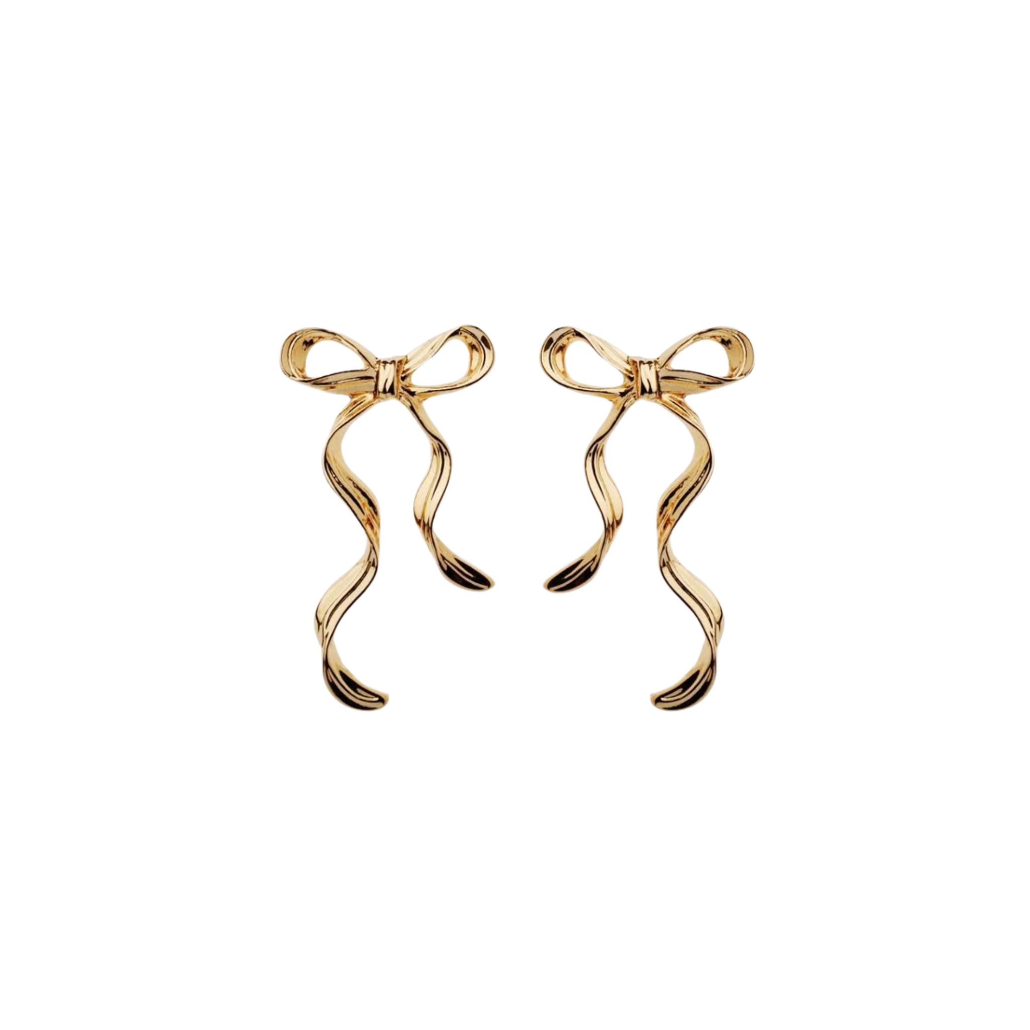 Embrace the viral Coquette trend with these exquisite gold ribbon earrings. Designed to look like a fluid, flowing satin ribbon frozen in gold, these bow studs add a sweet, romantic touch to your look. The perfect accessory for a soft, feminine aesthetic.